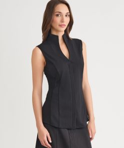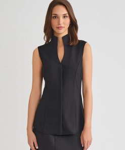 Misook Women’s Hi-neck Sleeveless 100% Pima Cotton Blouse, Scarlet Red – True Fit | Scarlet Red