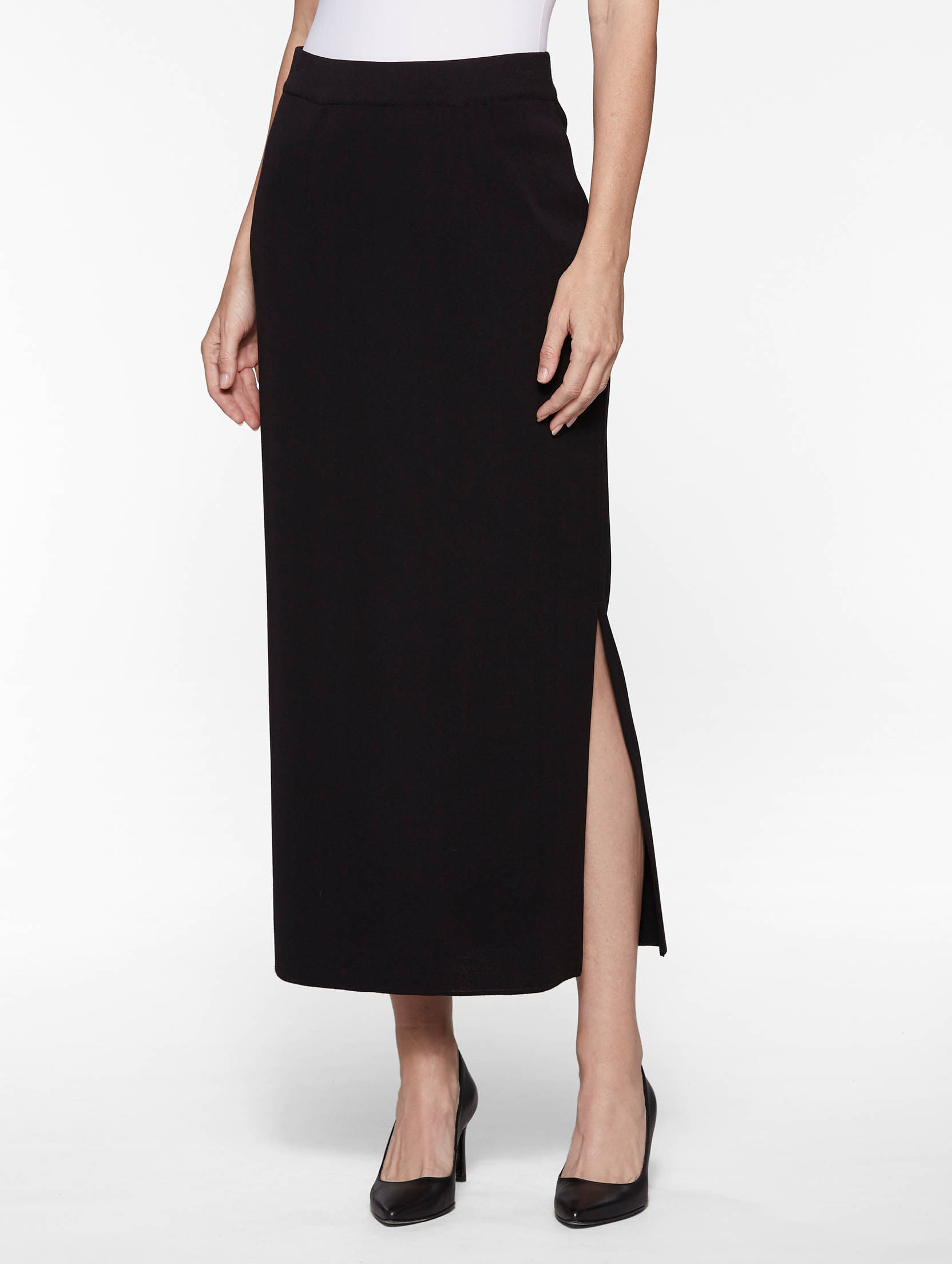 An easy, pull-on, 36″ knit skirt with a 15″ side slit that falls to the ankle. The soft knitted acrylic fabric is wrinkle-resistant and practical year-round. Drapes beautifully on the body and holds its shape and color.