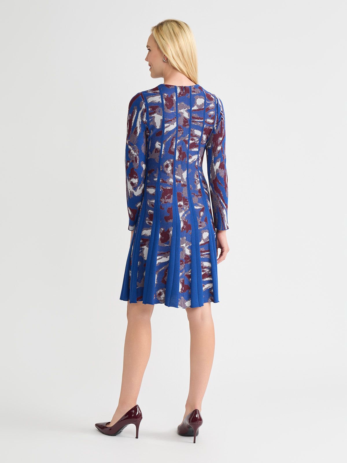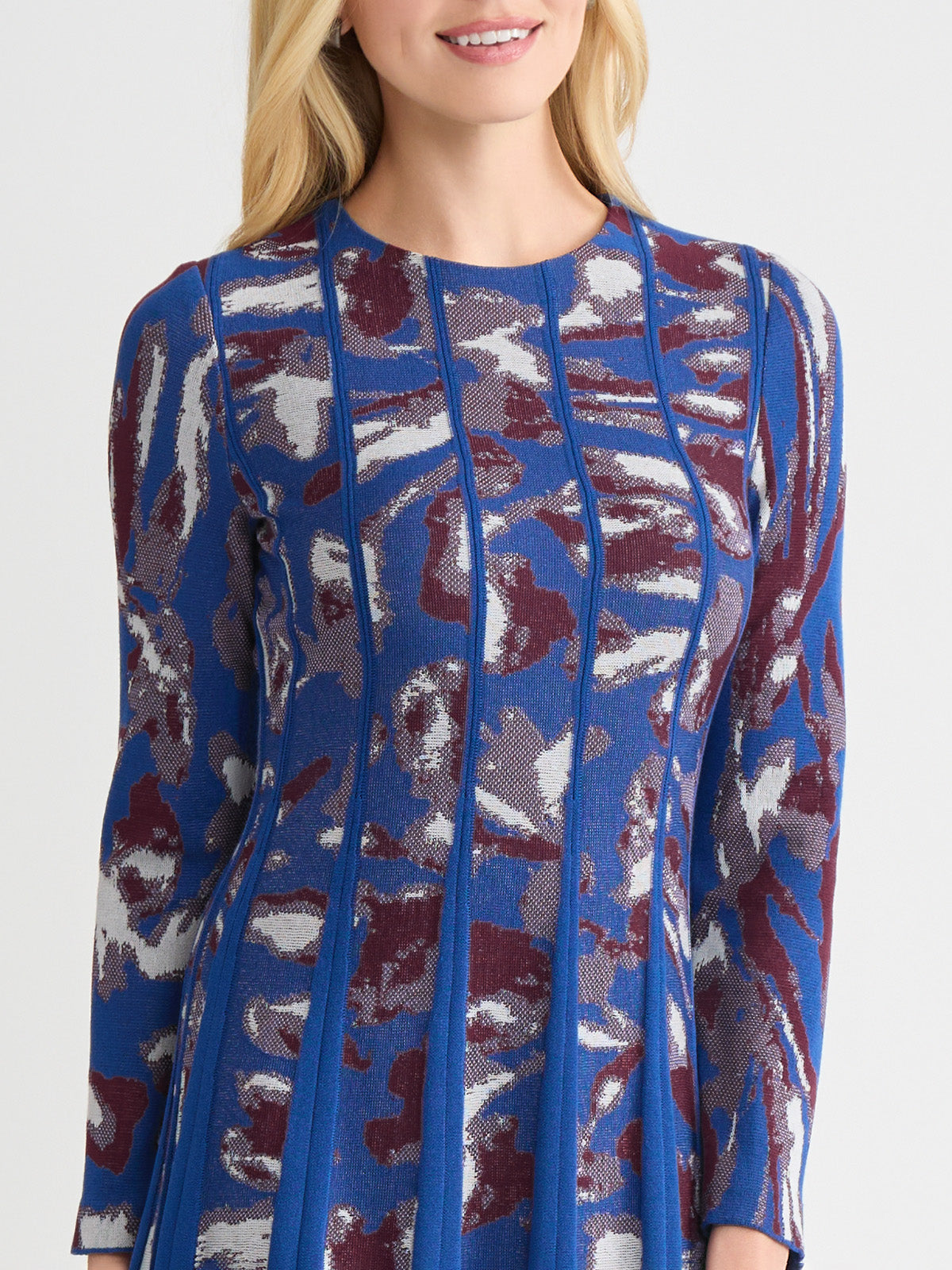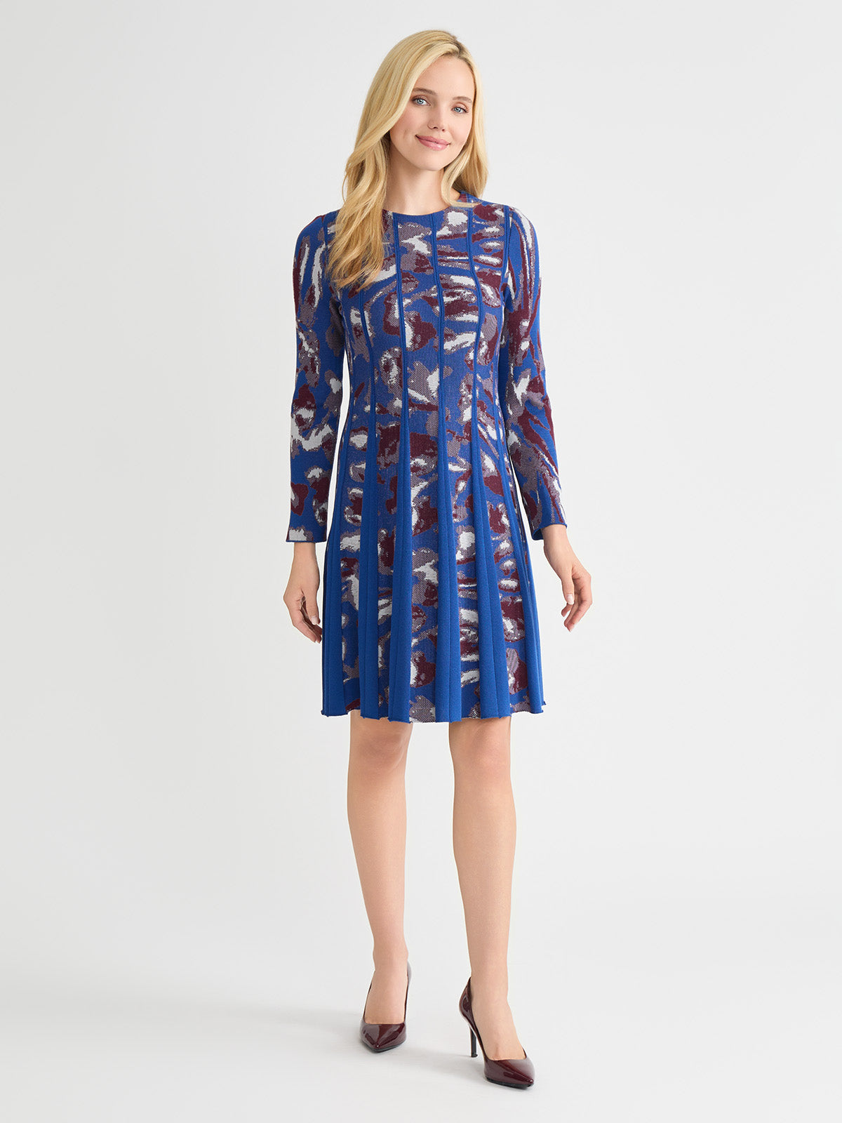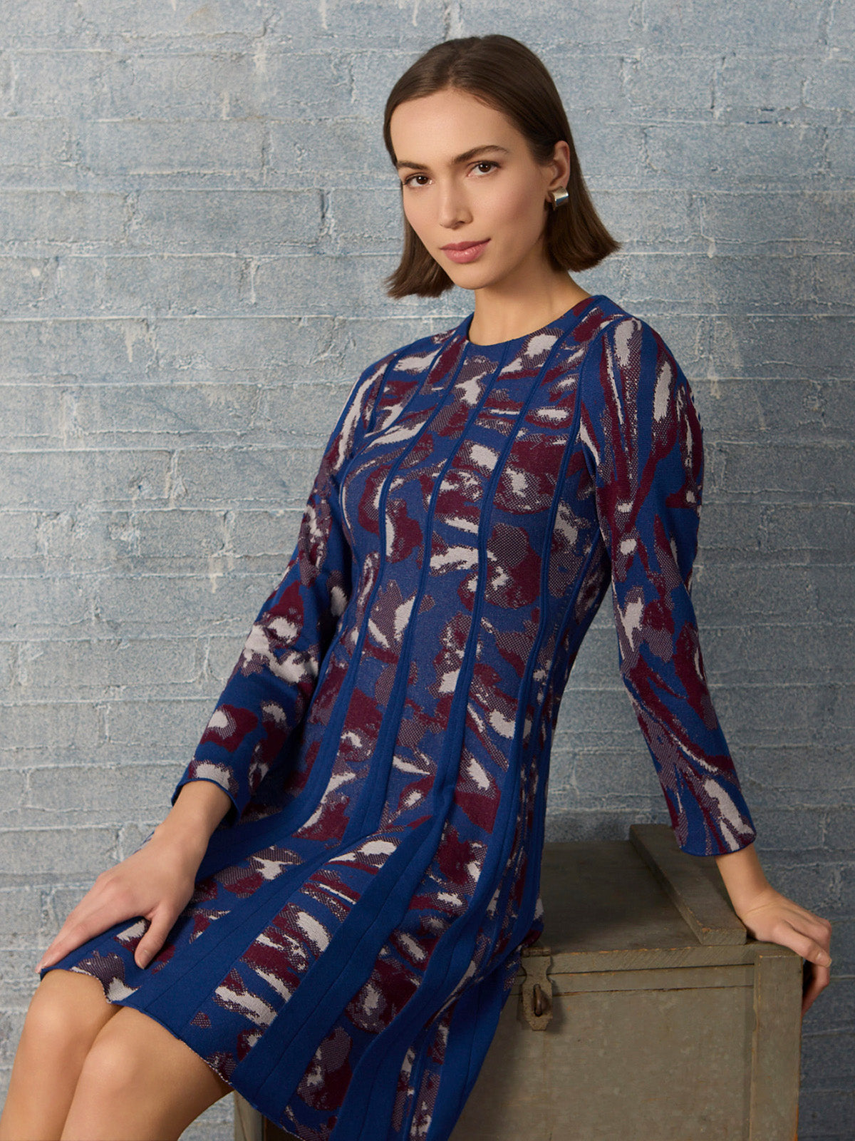 Grace every gathering with understated sophistication in our A-Line Jacquard Soft Knit Dress. Designed to flatter with its 38-inch length and classic A-line silhouette, this dress drapes beautifully for a refined, feminine shape. The jewel neckline adds a polished touch, while long sleeves lend a graceful balance perfect for cooler evenings or formal affairs. Intricate linear multi-pattern jacquard weaves texture and artistry into every inch, creating quiet drama without overwhelming. Whether it’s an elegant brunch, a holiday soirée, or a special evening out, this soft knit piece offers comfort without compromising style.