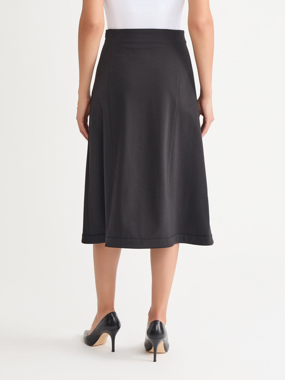Elevate your wardrobe with this versatile and stylish A-Line Stretch Ponte Midi Skirt. Designed with a tonal colorway that adds a sophisticated touch, this skirt effortlessly transitions from day to night. Crafted from a high-quality stretch Ponte fabric, it offers a flattering, comfortable fit that moves with you, making it an ideal choice for both work and evening events. Pair this iconic skirt with one of our matching Ponte jackets for a complete tonal look.