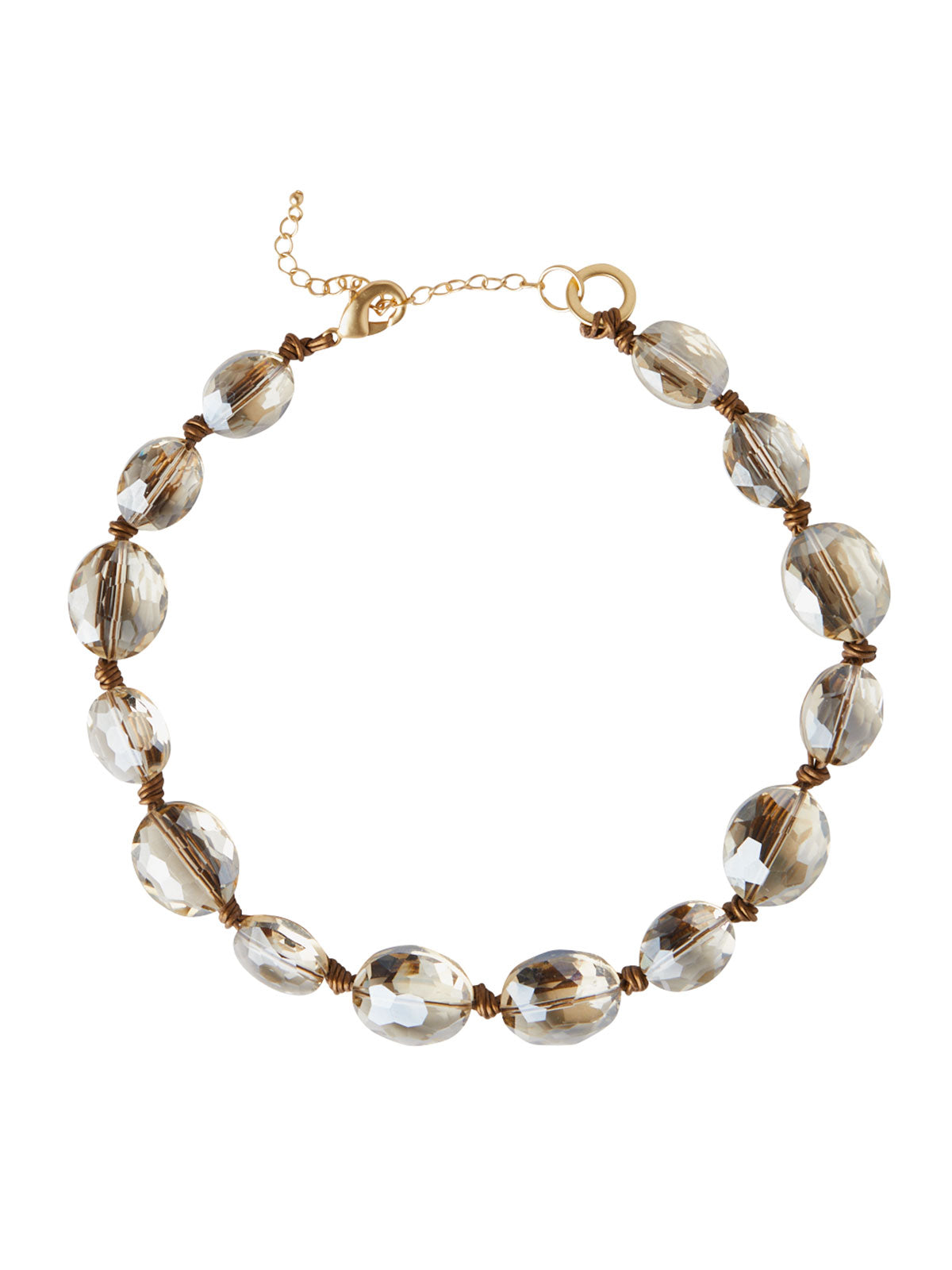 Misook Women’s Champagne Crystal Woven Leather Necklace | Crystal & Bronze