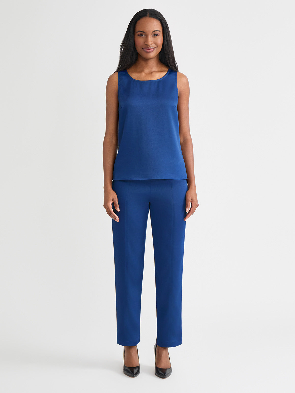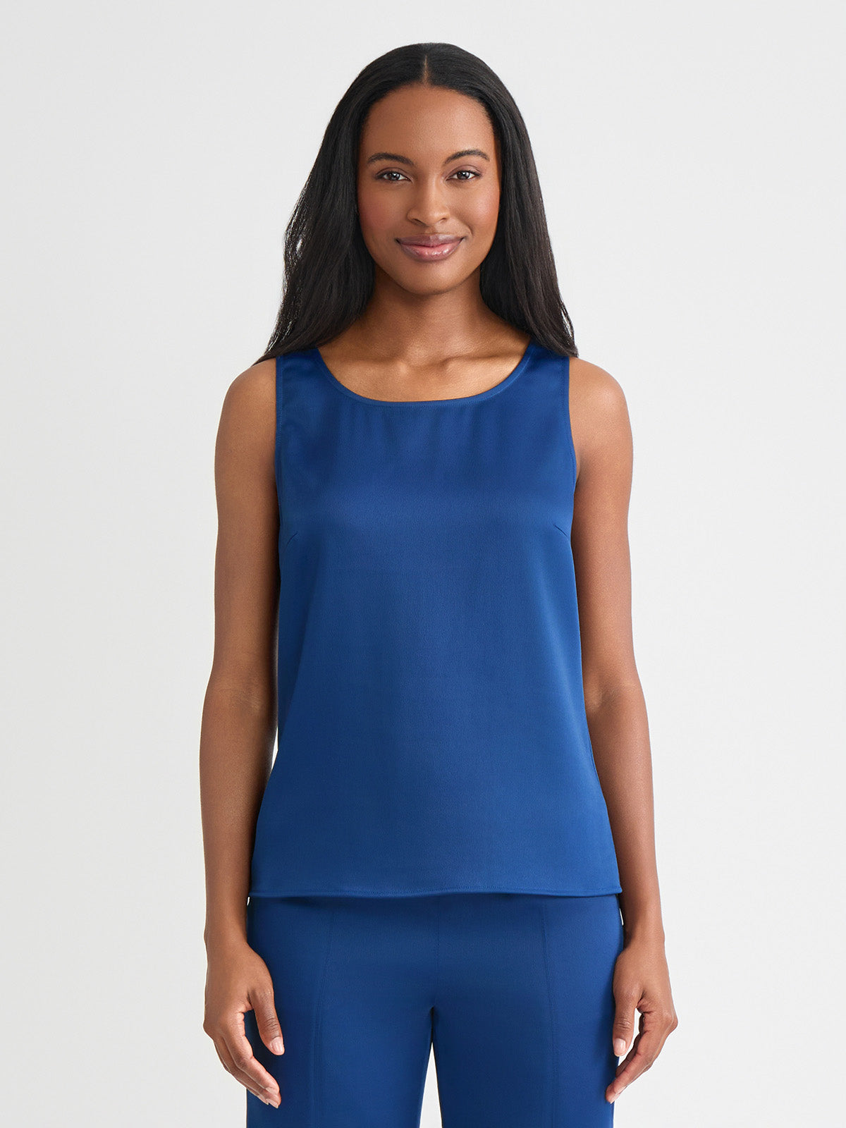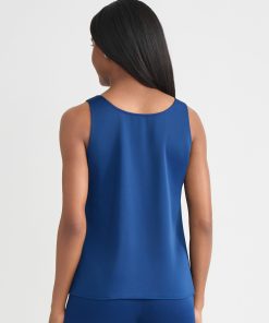 Misook Women’s Classic Crepe De Chine Tank Top, Lazuli Blue – True Fit | Lazuli Blue