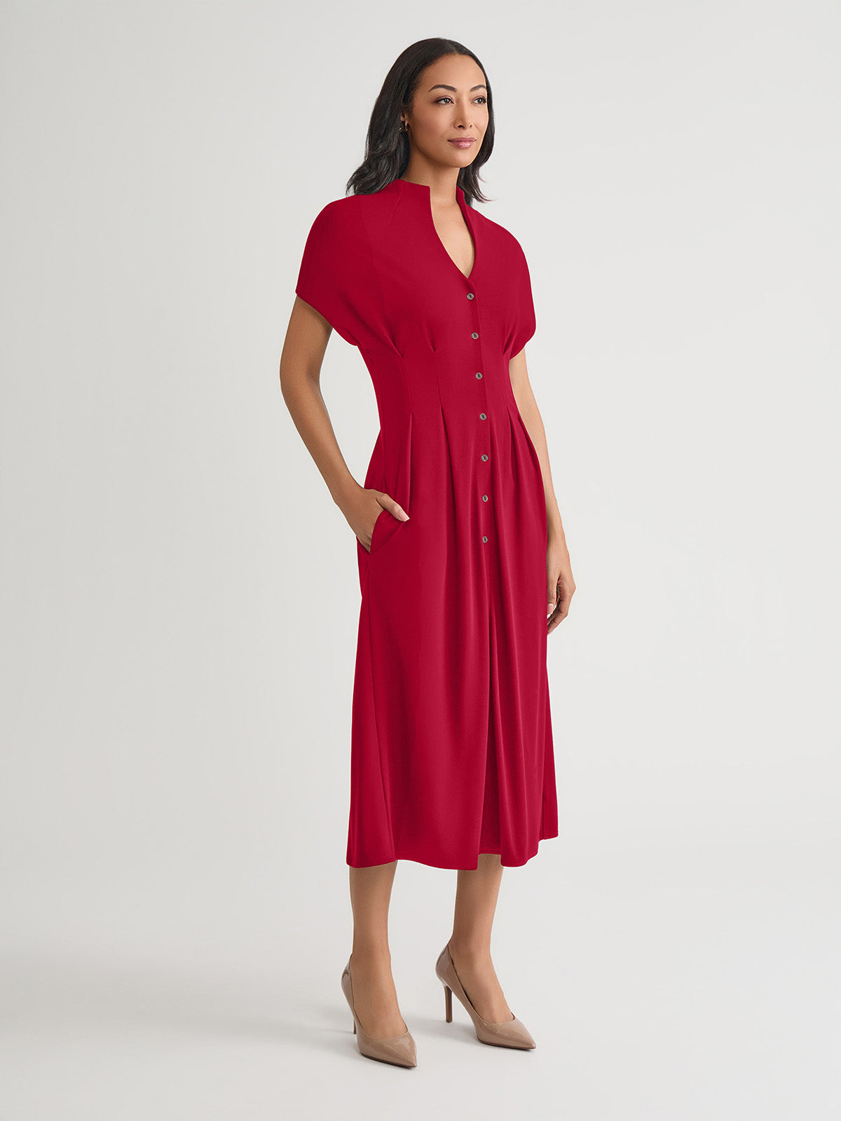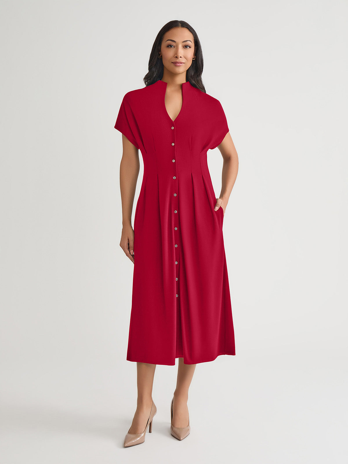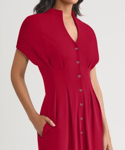 Misook Women’s Fit & Flare 100% Pima Cotton Button-up Maxi Dress, Scarlet Red – True Fit | Scarlet Red