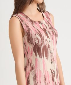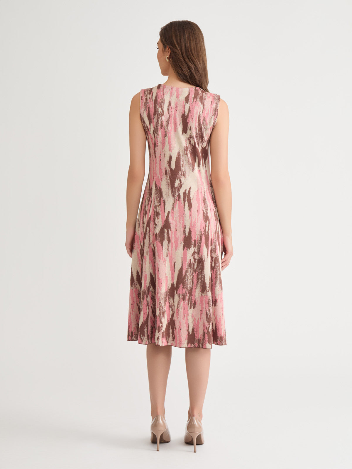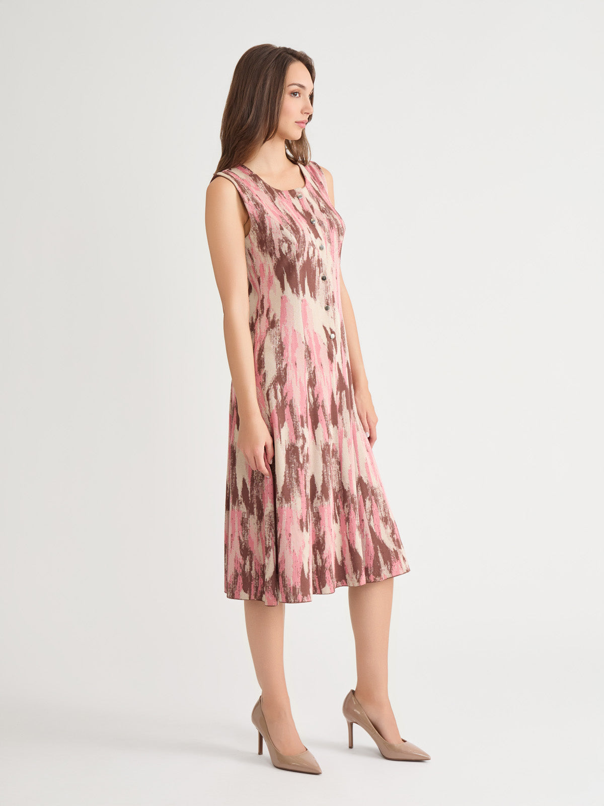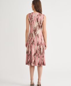 Misook Women’s Fit & Flare Brushstroke Jacquard Soft Knit Midi Dress – True Fit | Honey Suckle & Charmeuse & Truffle & Biscotti