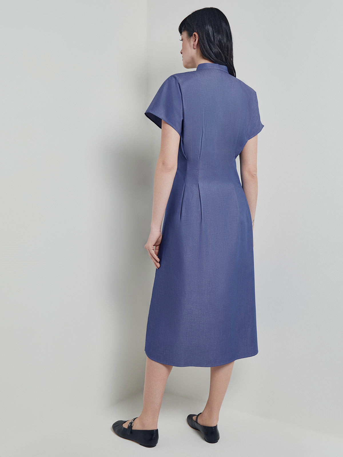 A symphony of grace and sophistication, our Maxi Fit & Flare Button Front Dress is crafted from crisp and durable cotton for a polished look. The dress boasts a flattering fit & flare silhouette that exudes timeless elegance. The stand neck collar and button front closure add a touch of refined allure, while the drop shoulder short sleeves evoke a sense of understated chic. Delicate pleats adorn the dress, adding depth and movement to its graceful silhouette. Effortlessly transition from day to night with this versatile piece, embracing its refined charm that captivates attention at any occasion, showcasing the epitome of feminine grace and enduring style. 47% Polyester / 42% Rayon / 11% Nylon; Unlined Machine or Hand Wash in Cold Water; Do Not Bleach Fit & Flare Silhouette; Women’s XS Maxi Dress Length is (48″) Short Sleeves (10″) Wrinkle-Resistant