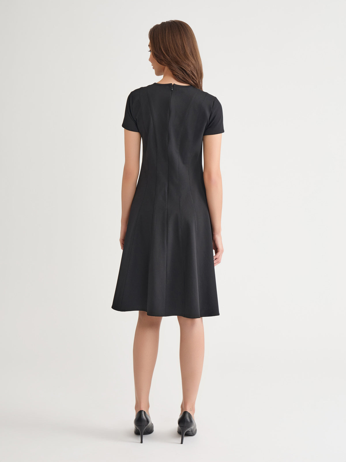 Step into effortless elegance with this Fit and Flare LuxeStretch Dress. Crafted from premium stretch Ponte fabric, this knee-length dress is designed to flatter your figure while providing all-day comfort. With a perfect balance of structure and flow, the fit and flare silhouette creates a beautiful, feminine shape that transitions seamlessly from day to night.