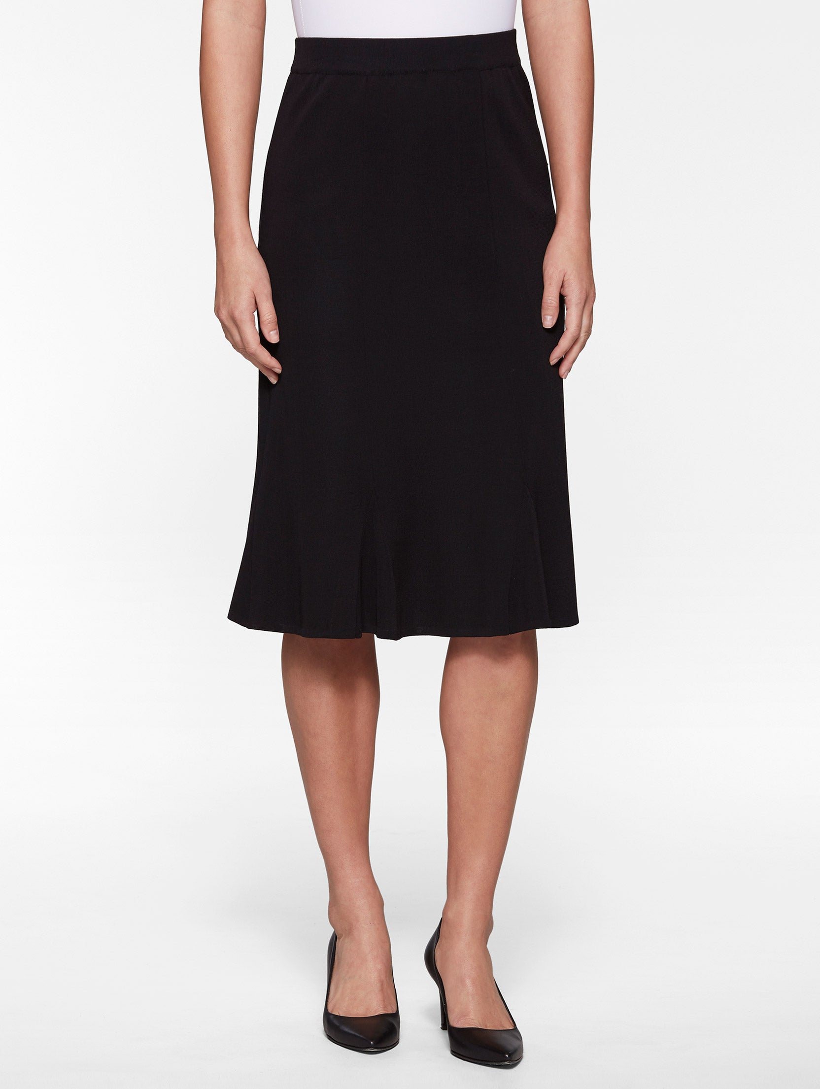 A must-have addition to your wardrobe, this pull-on skirt will add a feminine touch to any ensemble. With its 27″ length, this gored skirt falls right past the knees, giving you the coverage you want without sacrificing sophistication and style. Pair this skirt with your favorite Misook Jacket for a look that is both polished and versatile. Machine or Hand Wash Cold 90% Acrylic / 10% Polyester Women’s Skirt Length is 27″ Wrinkle-Resistant Gored Knit Skirt Pull-On; No-Roll Elastic Waistband; Unlined Fade & Stretch Resistant to Hold Its Shape and Color Fully Fashioned Knit This knit was expertly crafted with the meticulous “fully fashioned” method in which each panel of a garment is knit individually in its precise shape, eliminating waste and leaving little to no leftover materials. Bluesign® Certified Dyeing As a part of our mindful crafting process, this