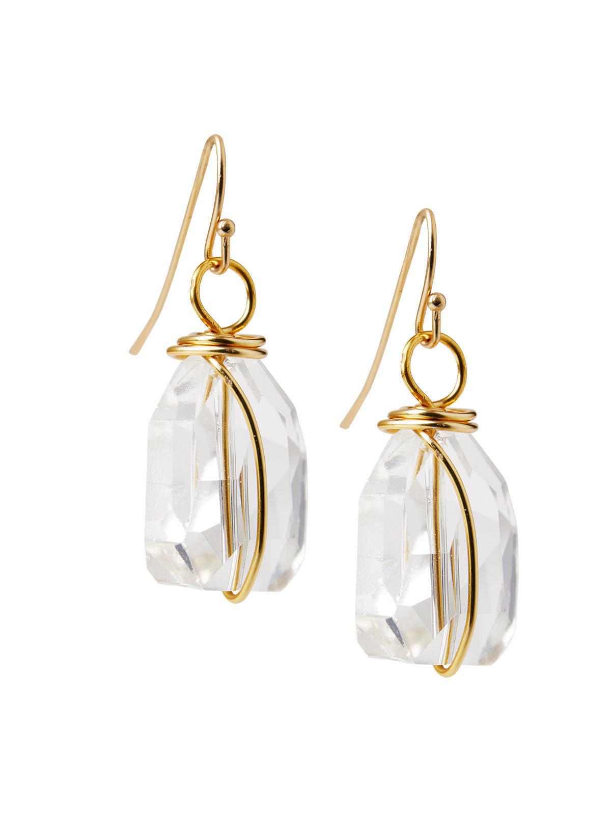 Misook Women’s Handmade Crystal Nugget Wire Wrapped Earring | Crystal & Gold