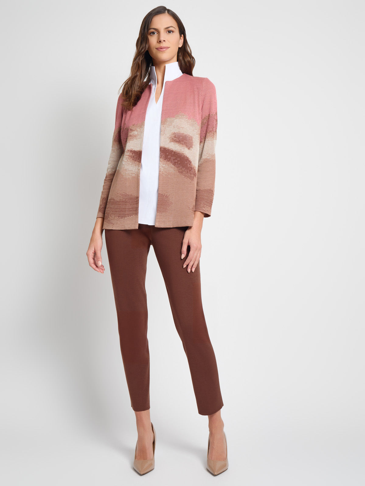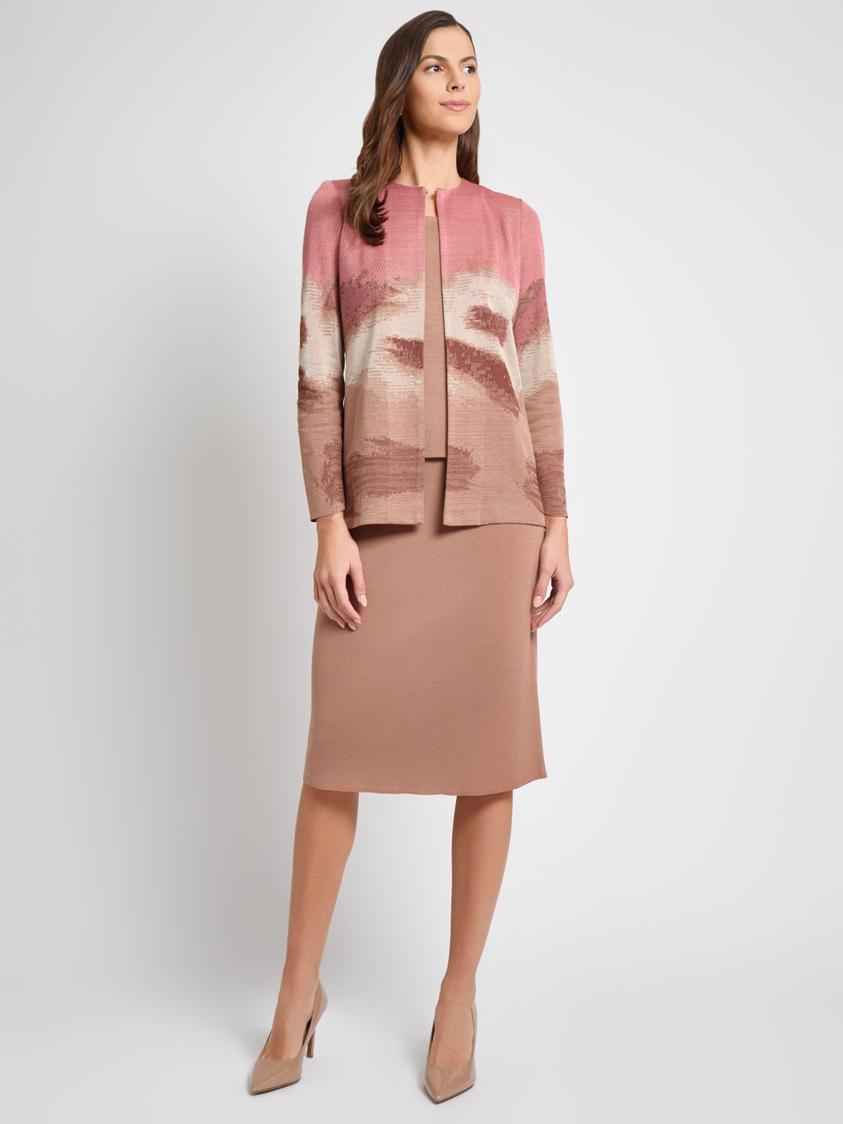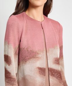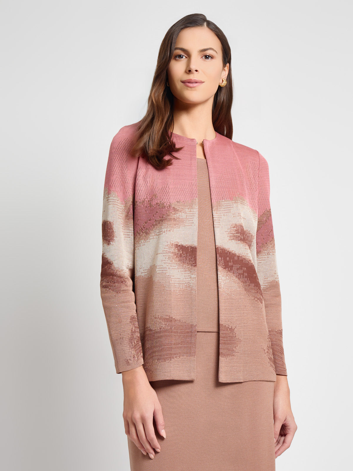 Misook Women’s Heritage Landscape Pattern Knit Jacket – True Fit | Honey Suckle & Charmeuse & Truffle & Biscotti