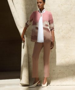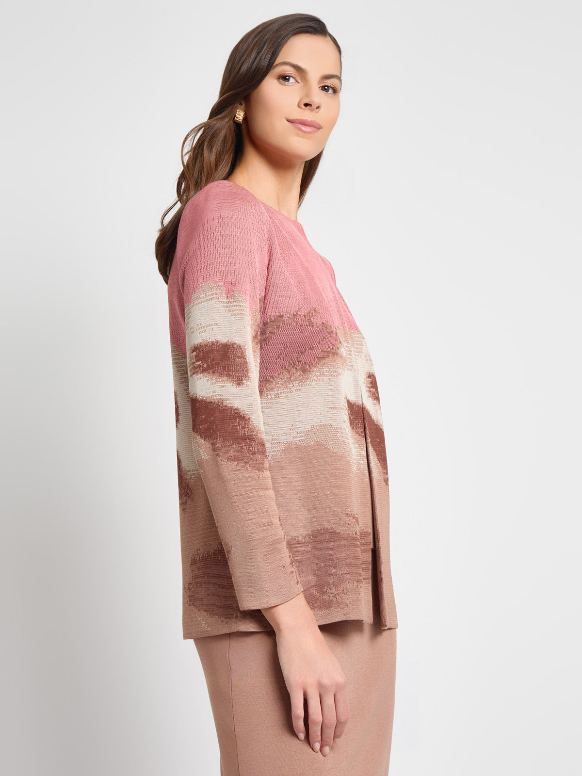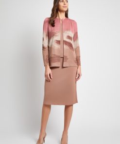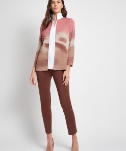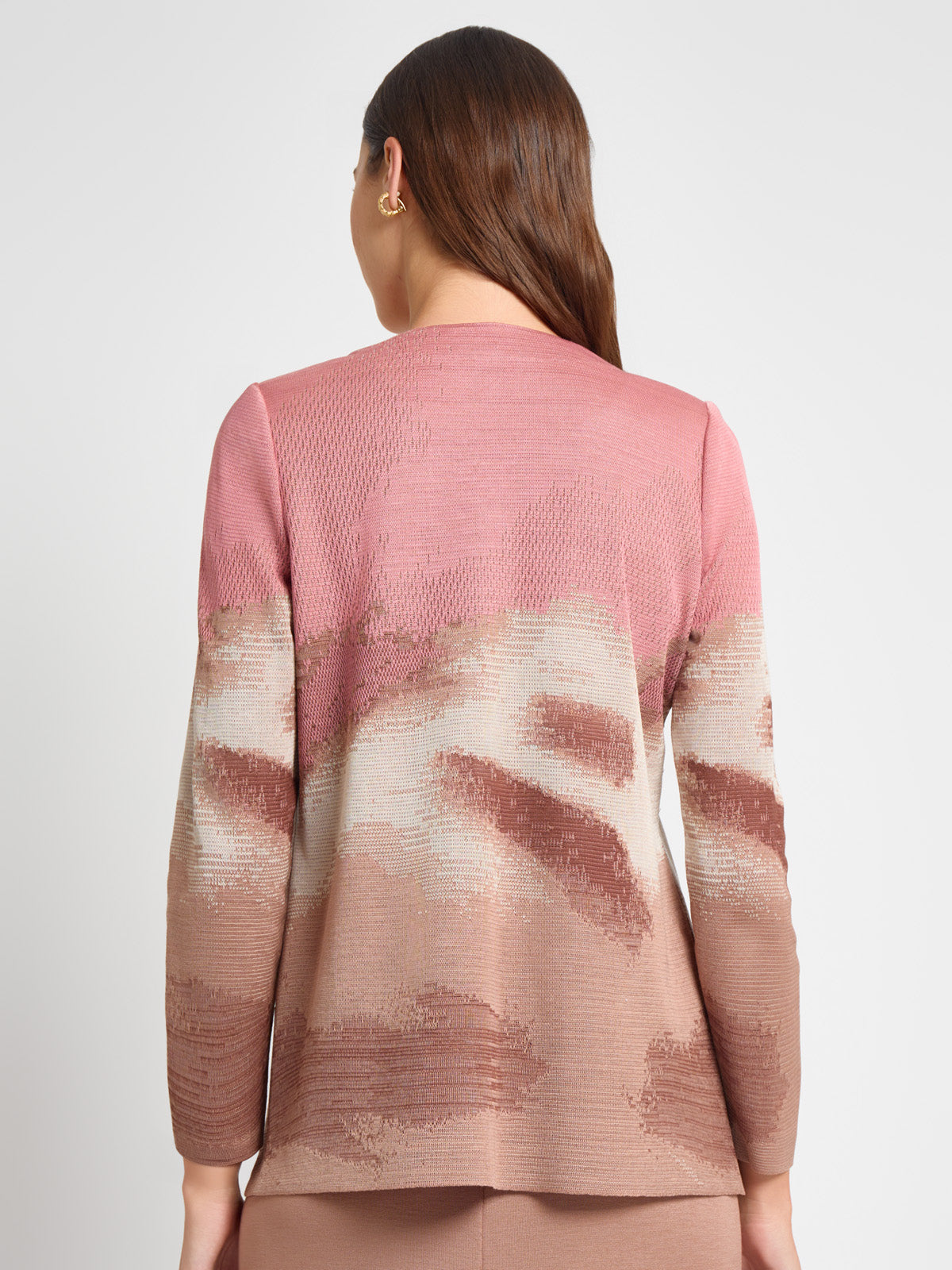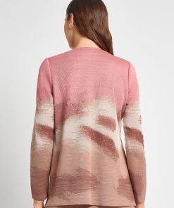 Misook Women’s Heritage Landscape Pattern Knit Jacket – True Fit | Honey Suckle & Charmeuse & Truffle & Biscotti