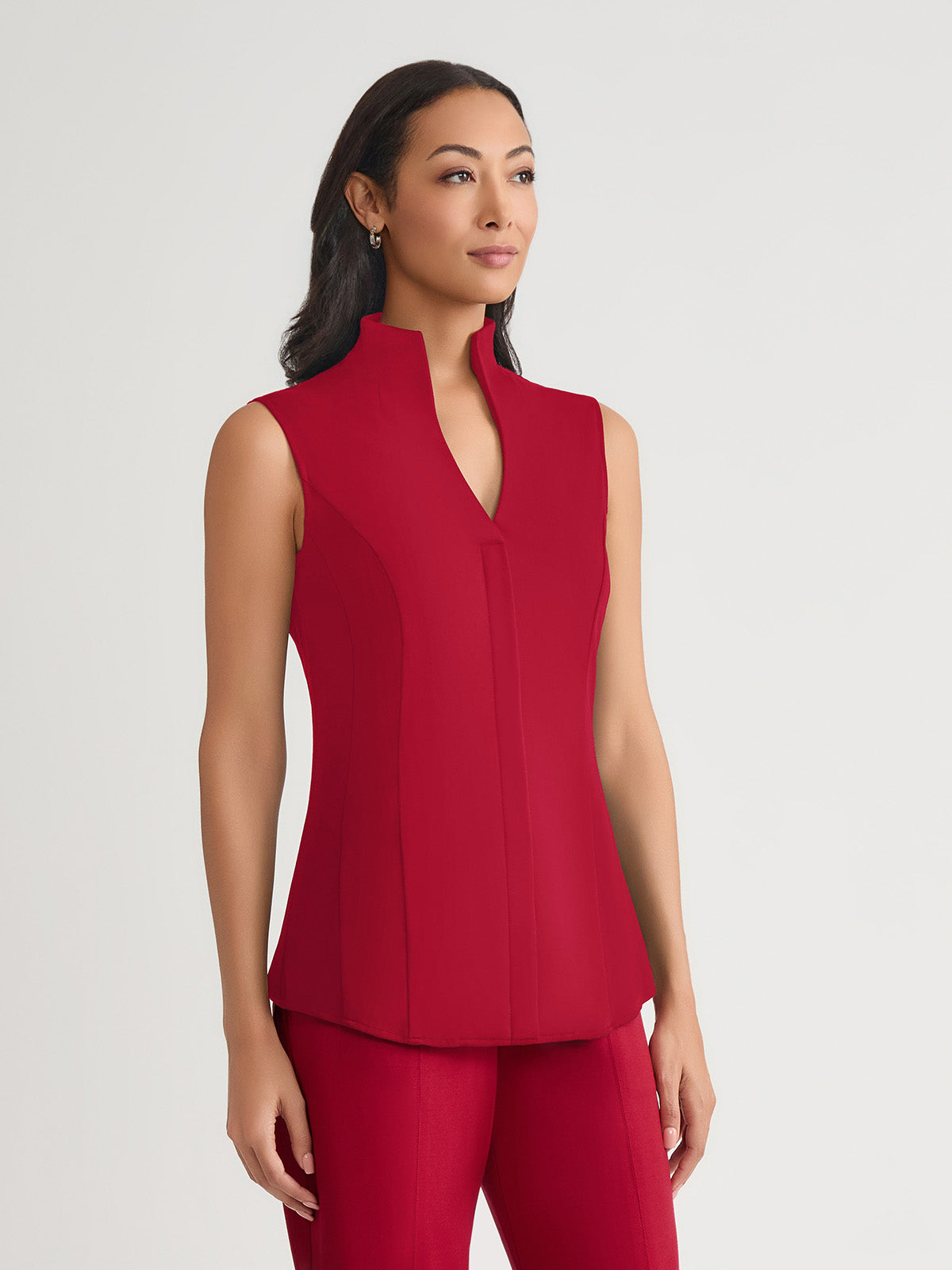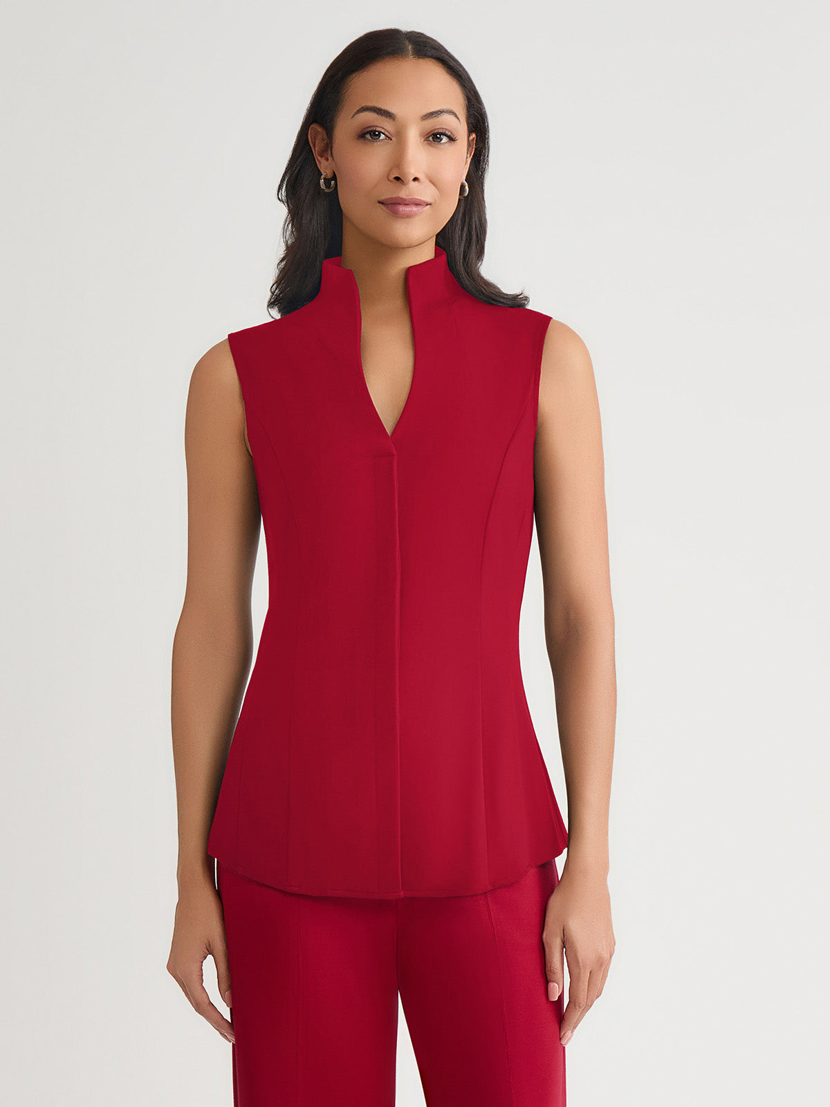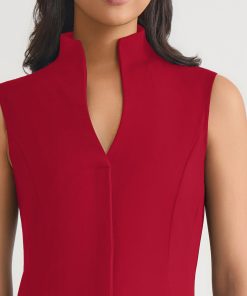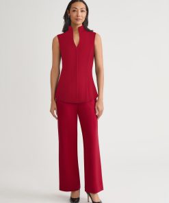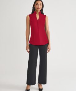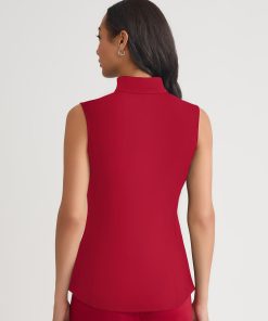 Misook Women’s Hi-neck Sleeveless 100% Pima Cotton Blouse, Scarlet Red – True Fit | Scarlet Red
