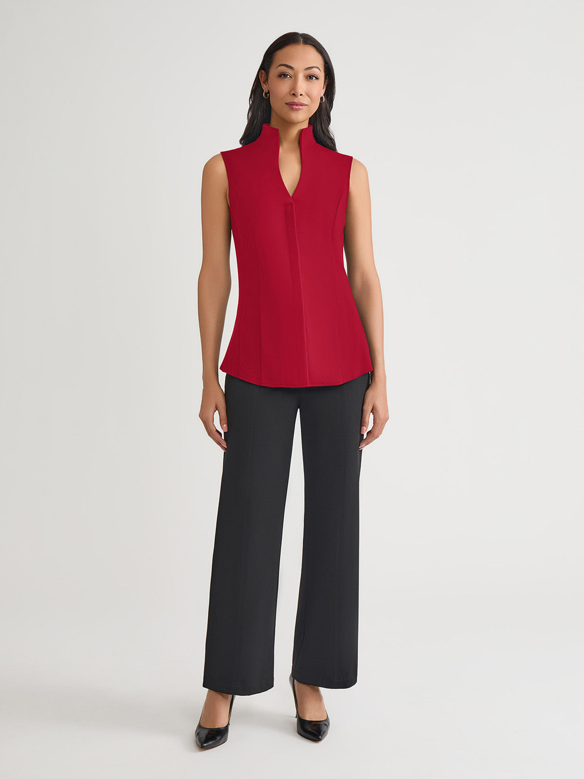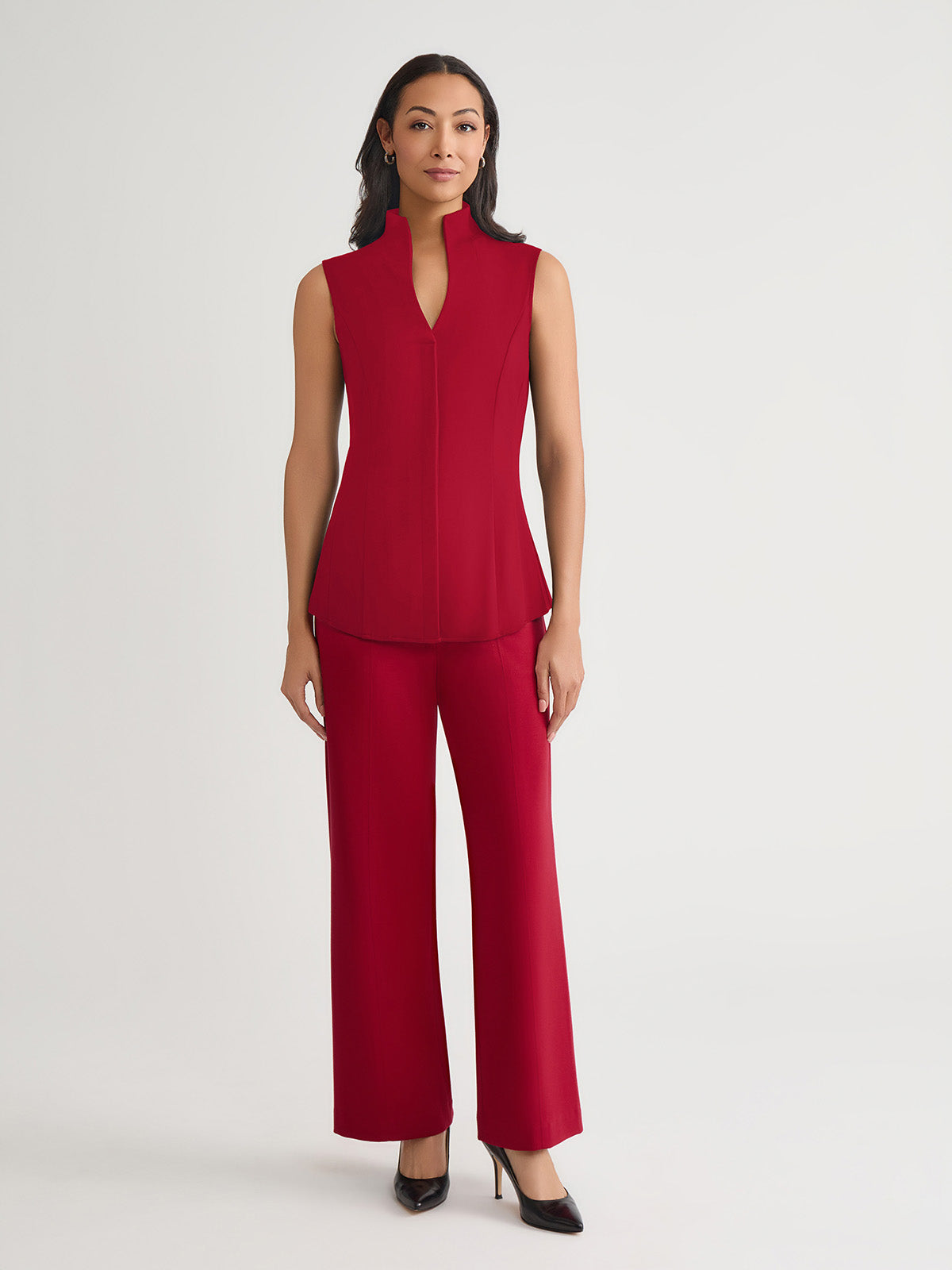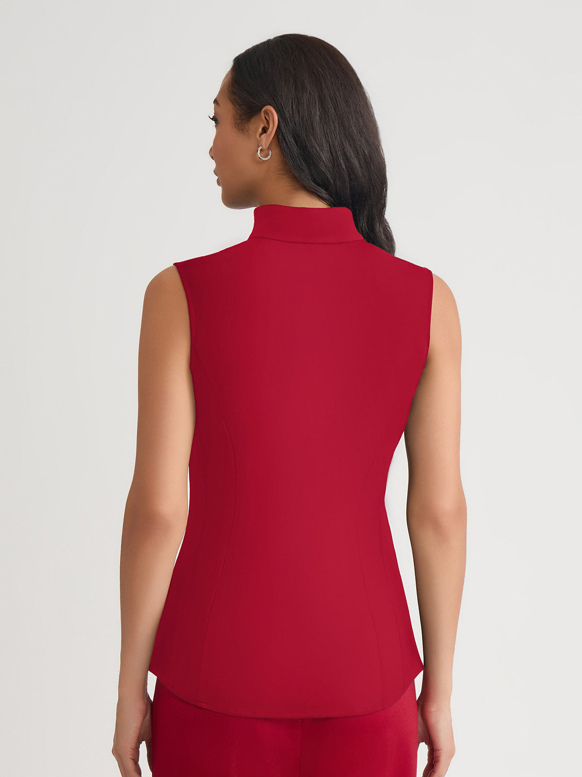 Misook Women’s Hi-neck Sleeveless 100% Pima Cotton Blouse, Scarlet Red – True Fit | Scarlet Red