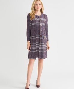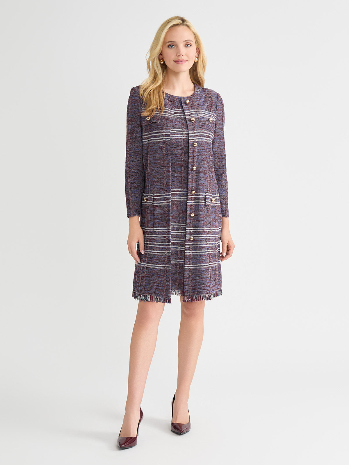 Misook Women’s Heritage Checkered Trim Knit Jacket – True Fit | Concord Purple & Black & New Ivory