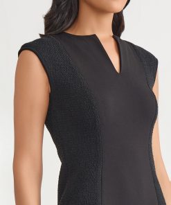 Elevate your professional wardrobe with this sleek Sheath Dress, designed to seamlessly combine style and comfort. Crafted from a sophisticated mix of knit and stretch Ponte fabric, this dress offers a flattering, form-fitting silhouette that moves with you throughout the day. With short cap sleeves, this versatile dress is perfect for a range of business occasions, ensuring you stay both confident and stylish in any professional setting.