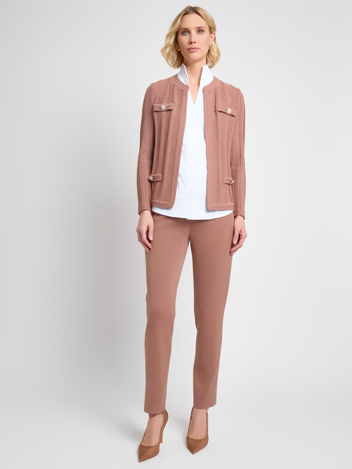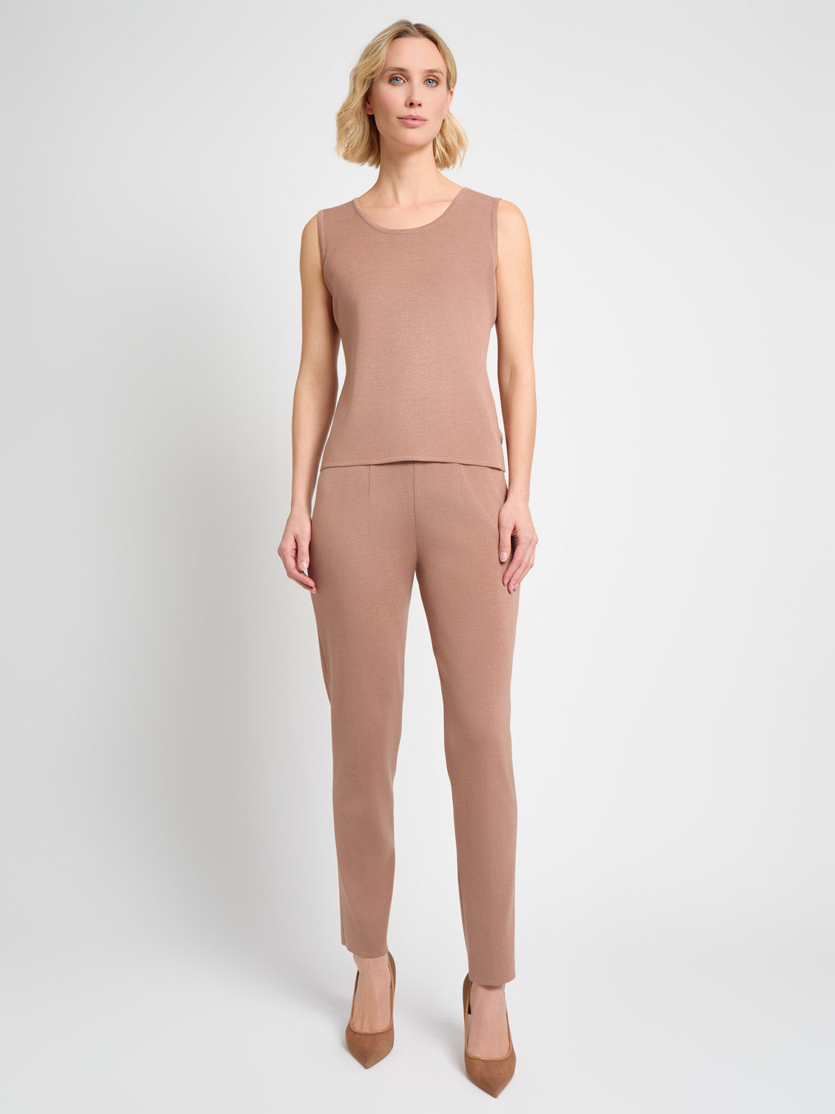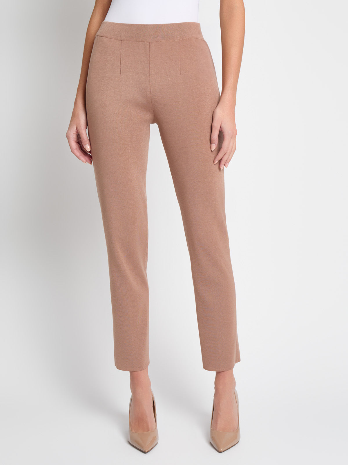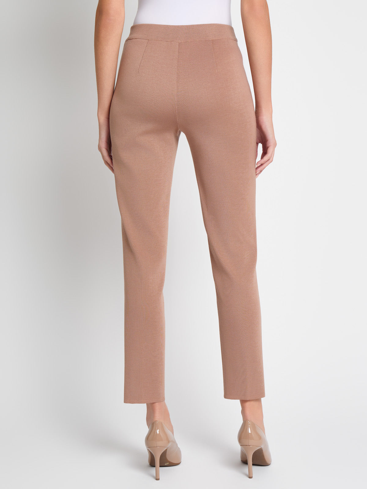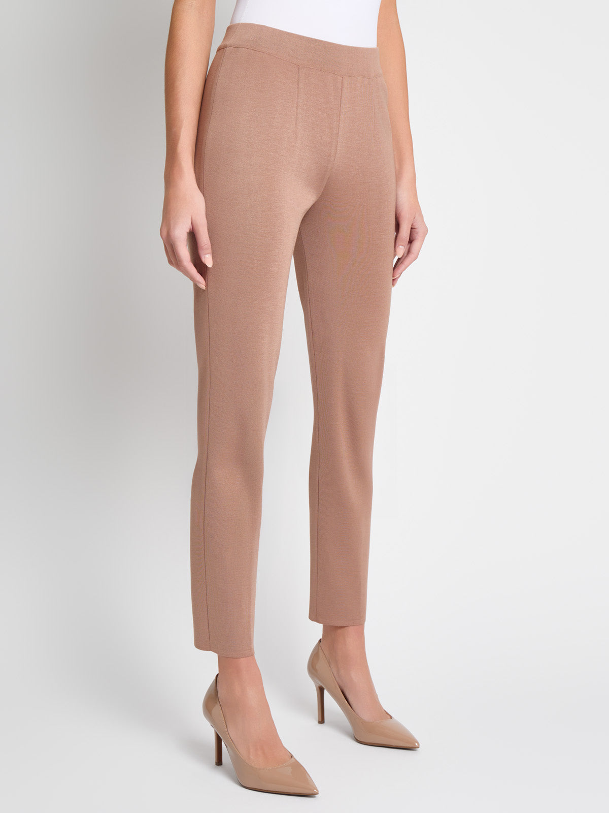 The classic Misook knit pant gets a modern update with this slimmer leg that perfectly skims your silhouette. This comfortable yet classic pull-on pant can take you from the office to dinner effortlessly. Pair these pants with your favorite tank, tunic, or jacket for unlimited versatility.