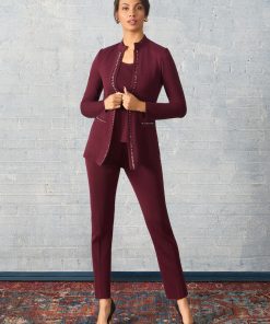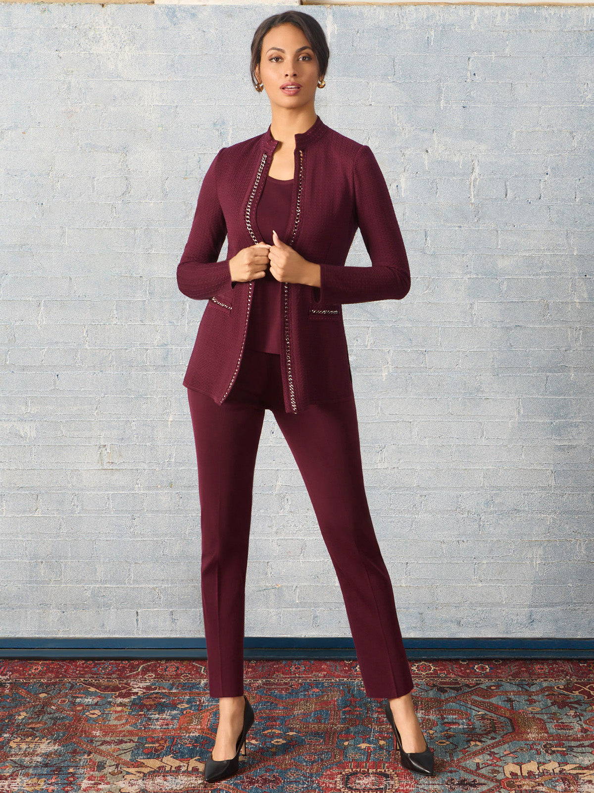 Misook Women’s Nancy Slim Leg Mylana Knit Pant, Sangria – True Fit | Sangria