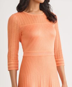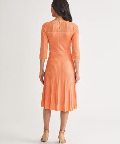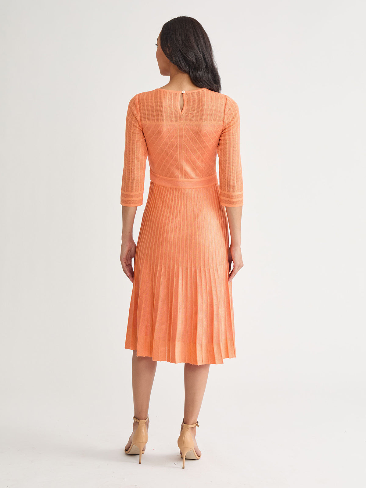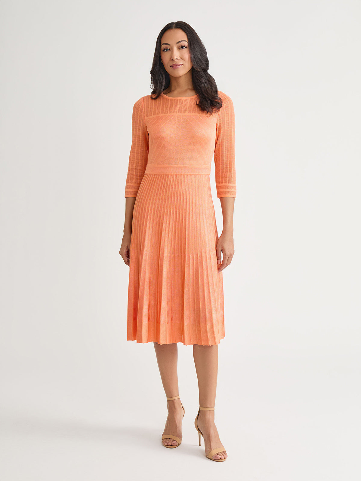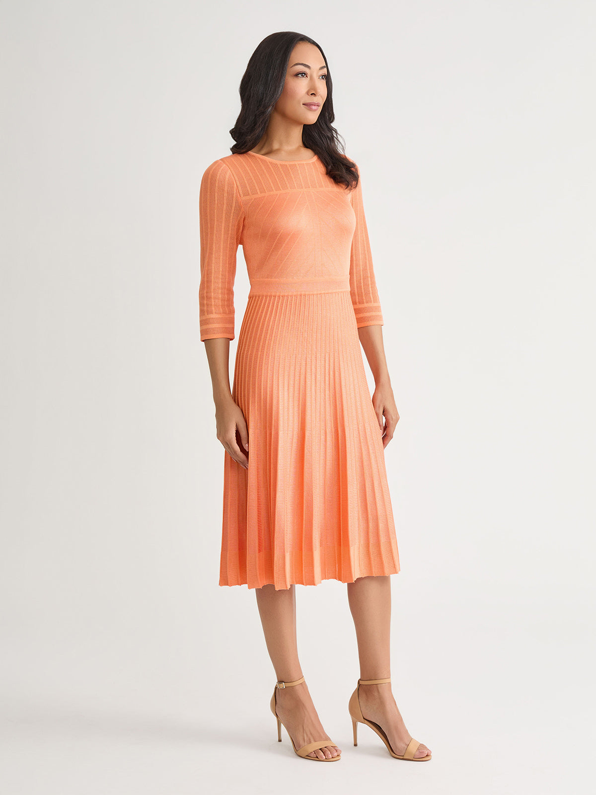 Elegance is redefined at every angle of this lovely Pleated Geometric-Knit Midi Dress. Delicate pleats create graceful motion while sharp geometric lines enhance the feminine silhouette with intentional placement of subtle, abstract design.