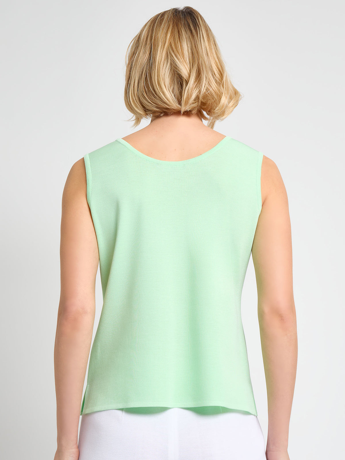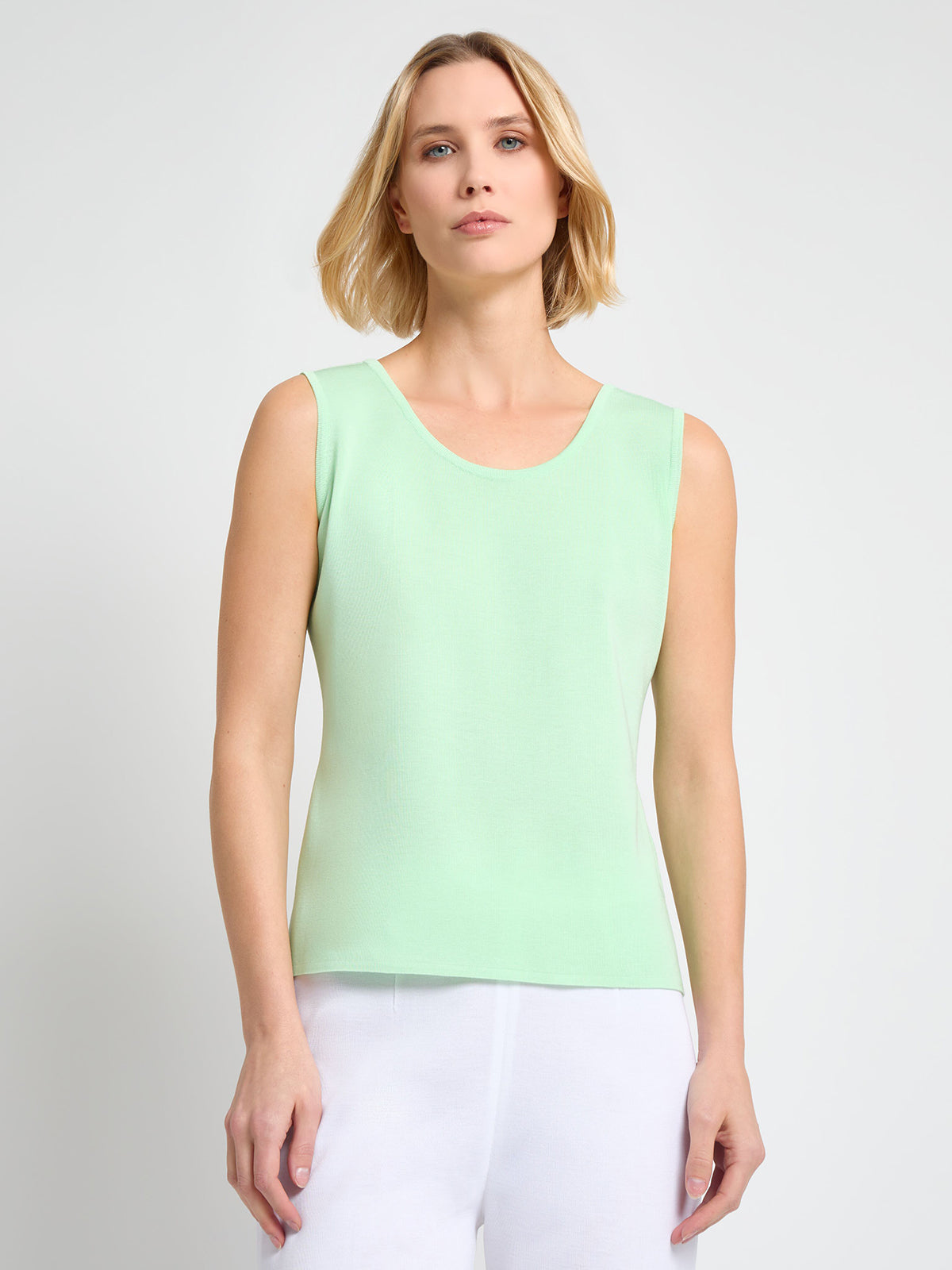 This 23″ pullover, double scoop-neck tank is a statement-worthy piece perfect for layering. Falling right at the hips, this tank is slimming for all sizes. This tank is crafted in our signature wrinkle-resistant knit, and it holds its shape throughout your busy day. Wear it on its own or layered under your favorite Misook jacket for a look that is as professional as it is polished.
