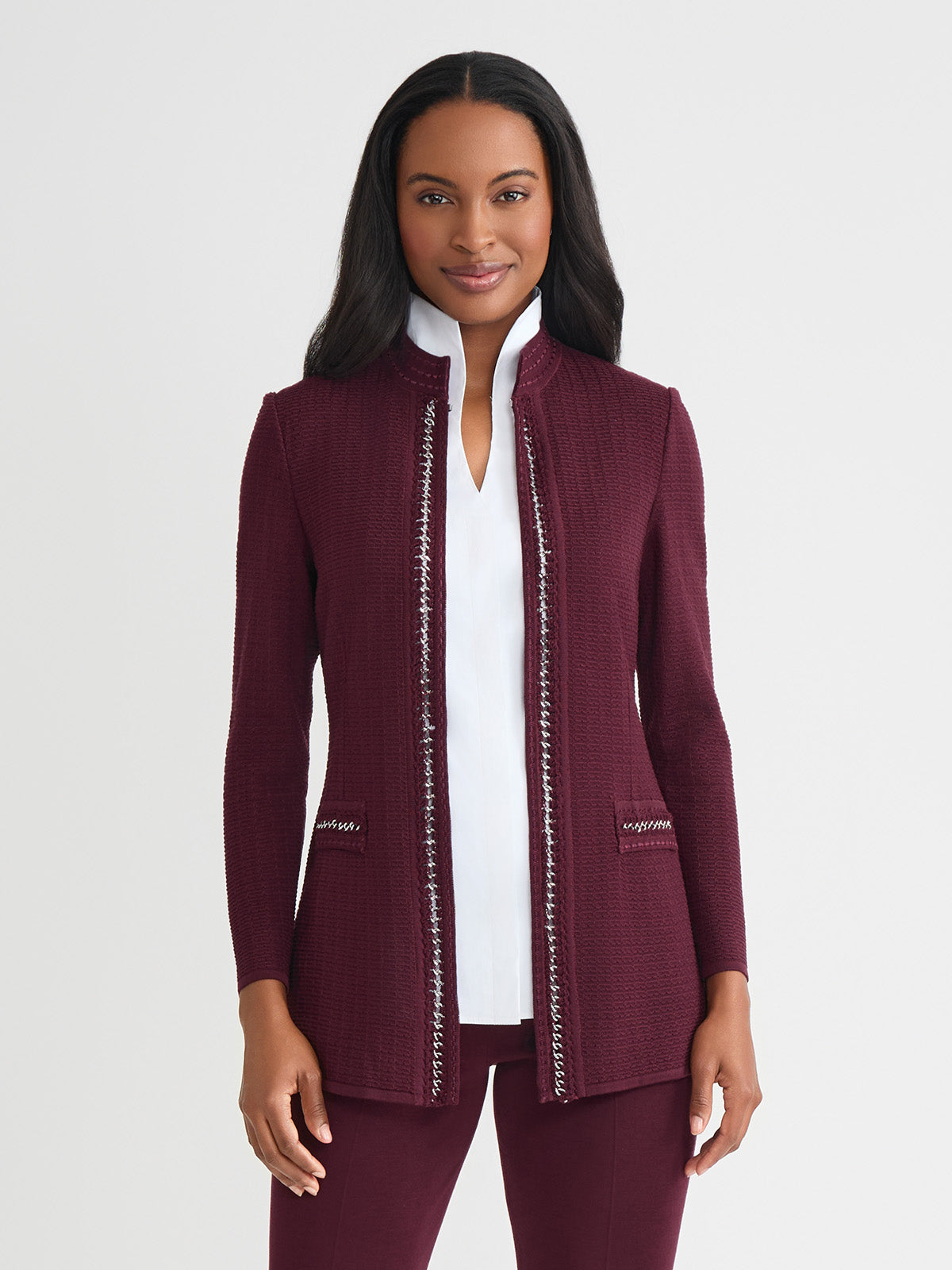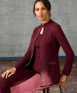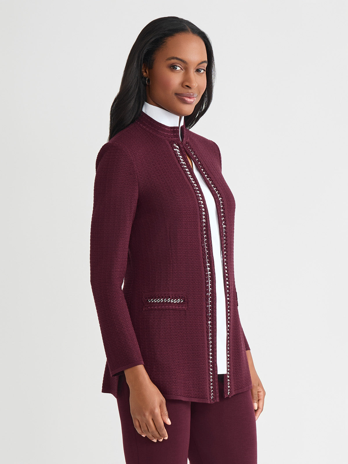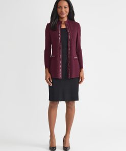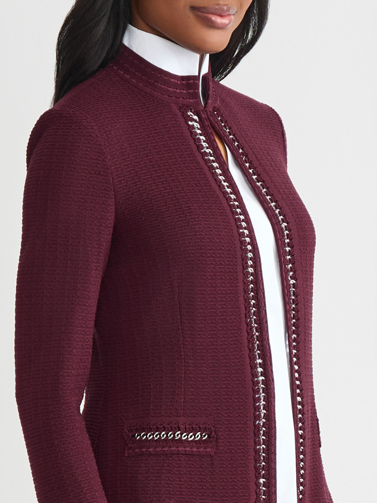 Misook Women’s Tailored Crochet Chain Trim Knit Jacket – True Fit | Sangria