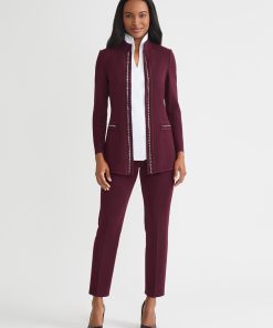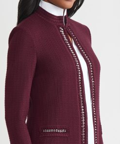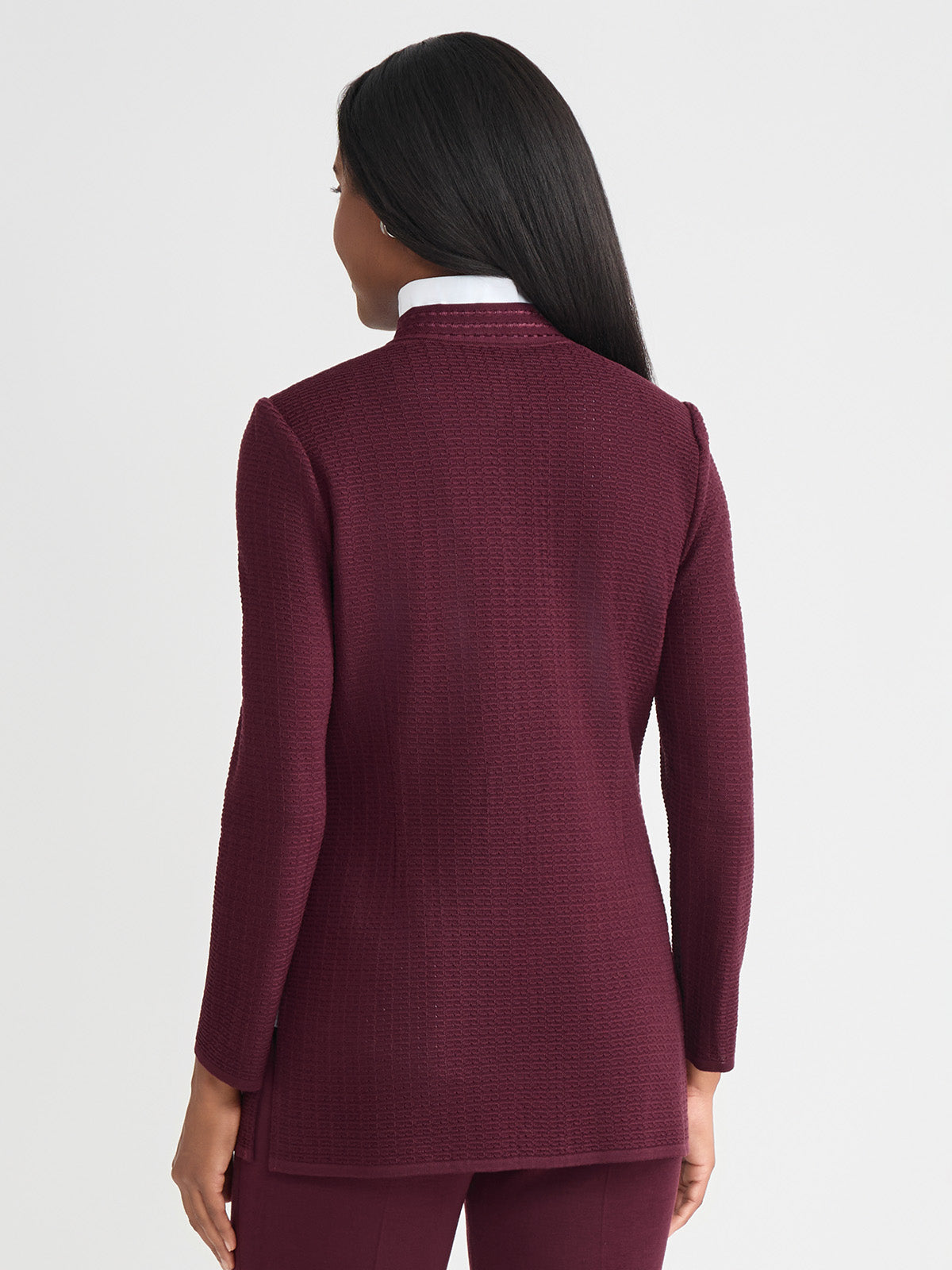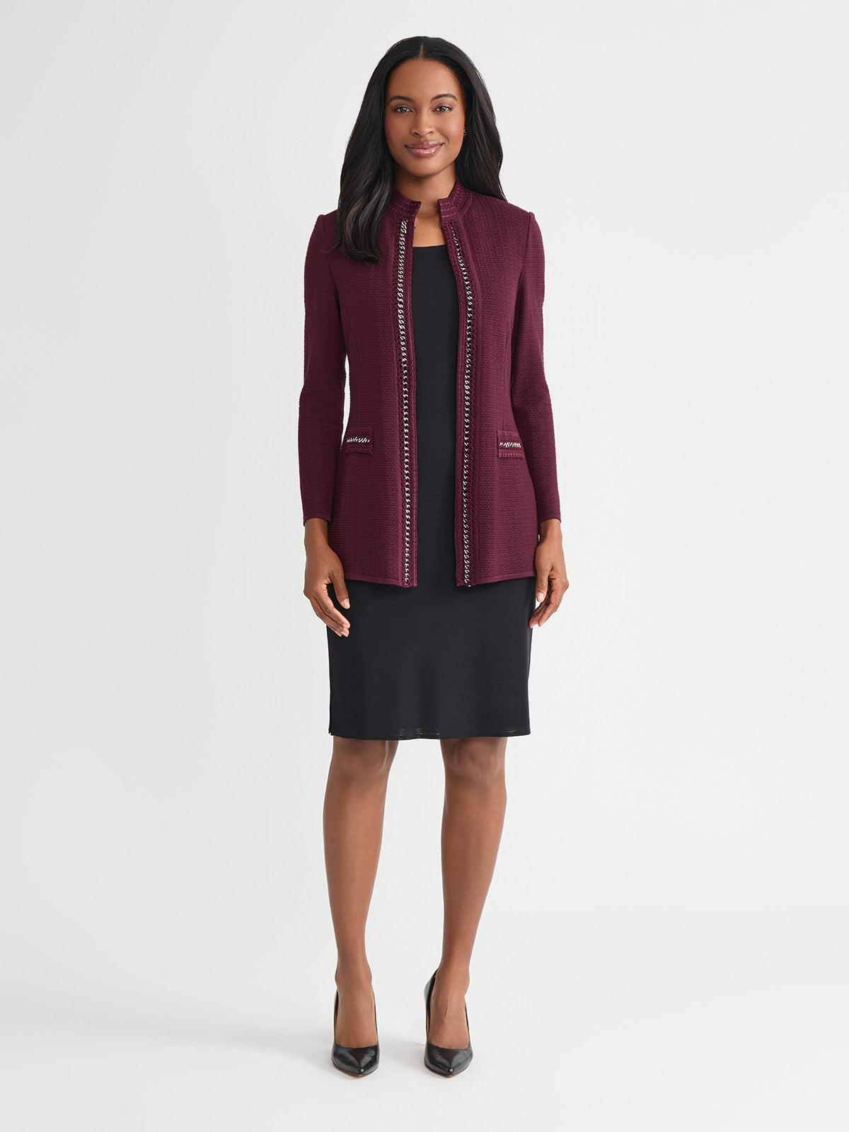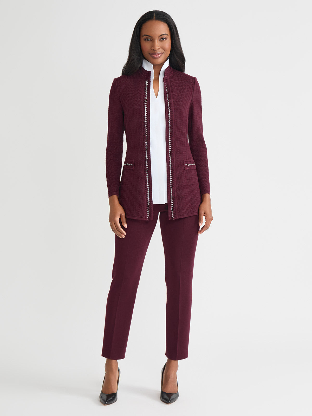 Misook Women’s Tailored Crochet Chain Trim Knit Jacket – True Fit | Sangria