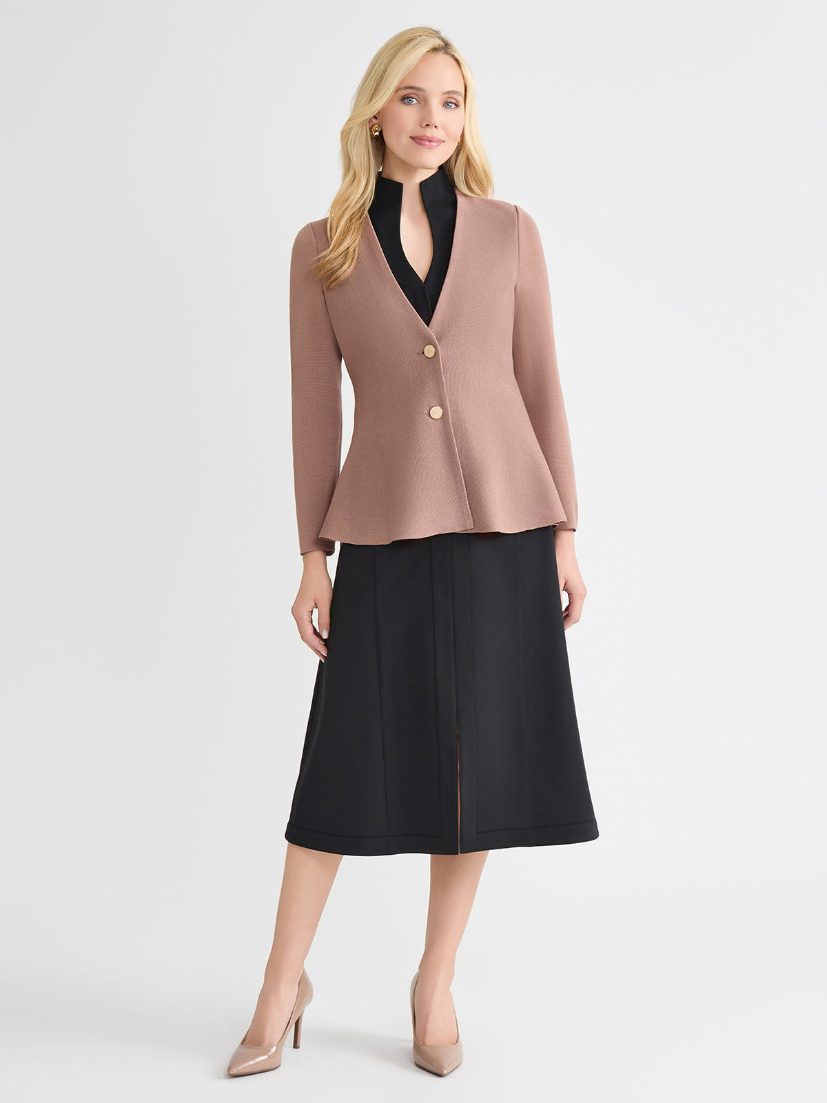 Misook Women’s Tailored Fit & Flared Tonal Knit Jacket – True Fit | Charmeuse