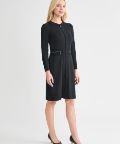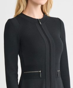 Misook Women’s Zipper Front Sheath Knit Coat Dress – True Fit | Black