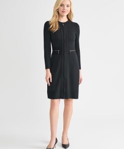 Misook Women’s Zipper Front Sheath Knit Coat Dress – True Fit | Black